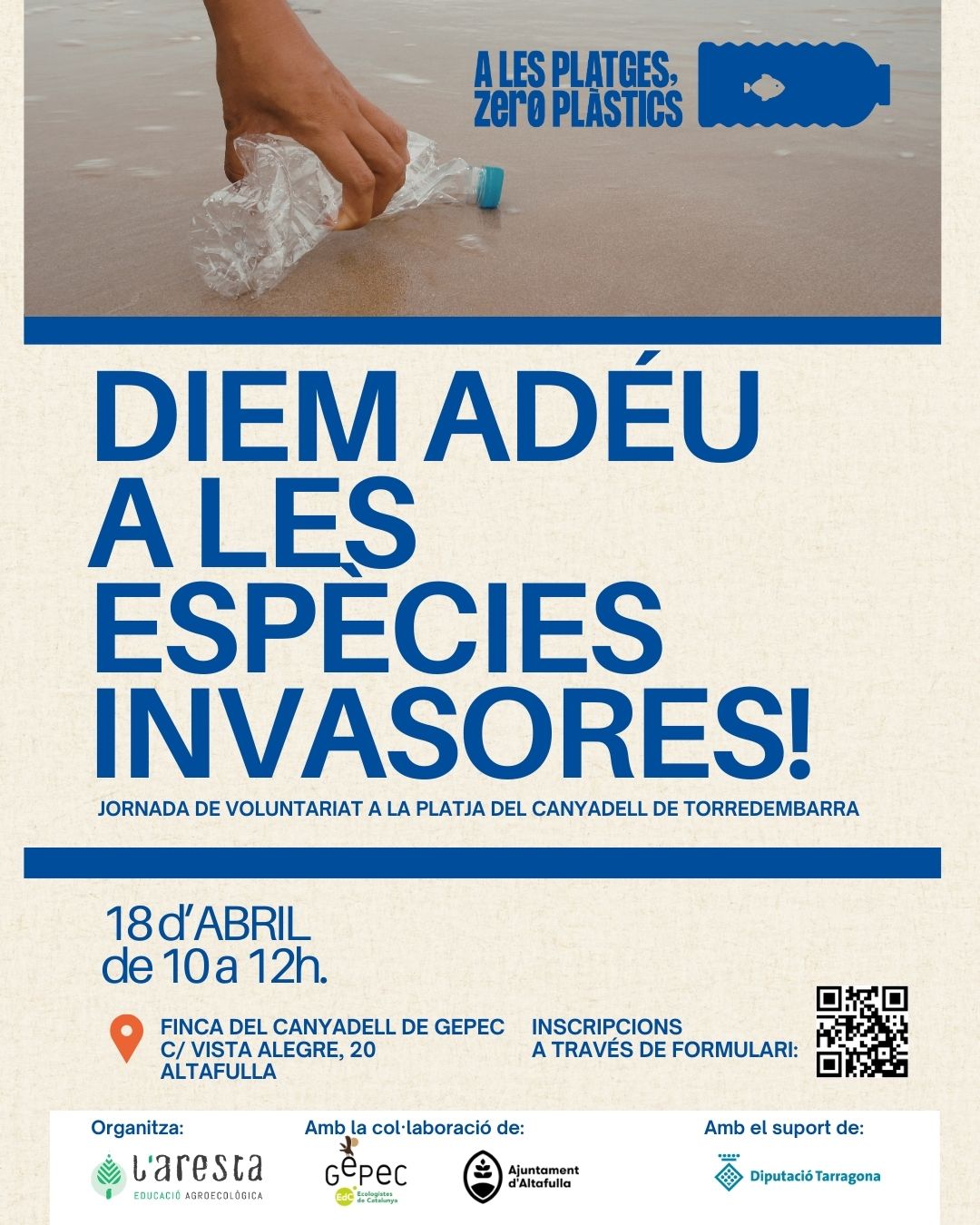 És una oportunitat per implicar-te directament en la preservació del medi ambient. Forma part del projecte A les platges, Zero plàstic de la Cooperativa l’Aresta i amb la col·laboració del GEPEC-EdC.